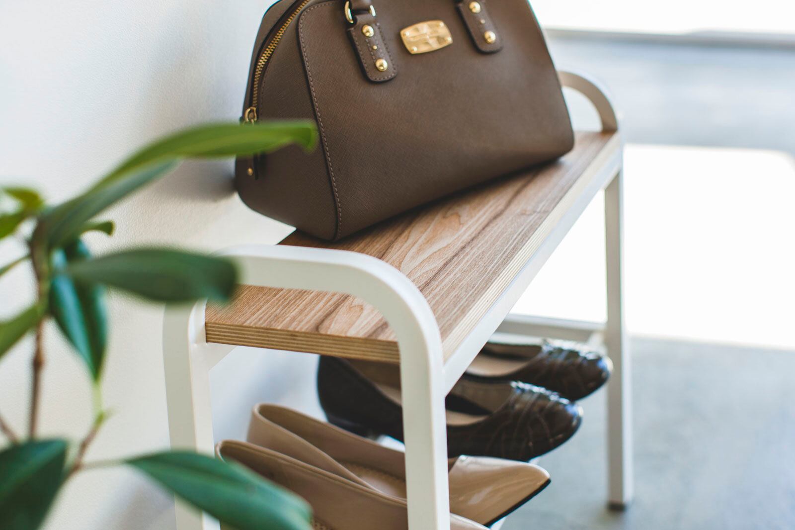 お出かけ前やご帰宅時の靴の着脱や荷物置きとしてはもちろん、ハンドル付きで立ち上がりやすいベンチにも使えます。座面の下に、最大4足の靴を収納できます。