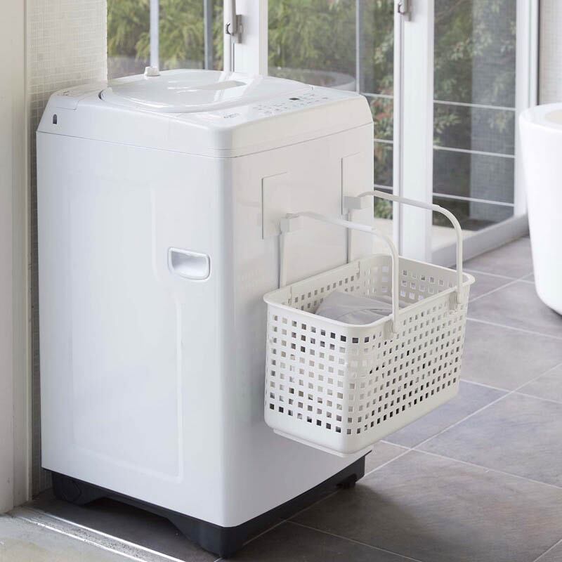 強力マグネットで洗濯機に取り付けるだけ、ランドリーバスケットを浮かせてスッキリ整頓します。収納するものに合わせて、縦向き・横向きどちらでも使えます。スプレーからハンガー・ピンチハンガーなど様々なものを収納できます。