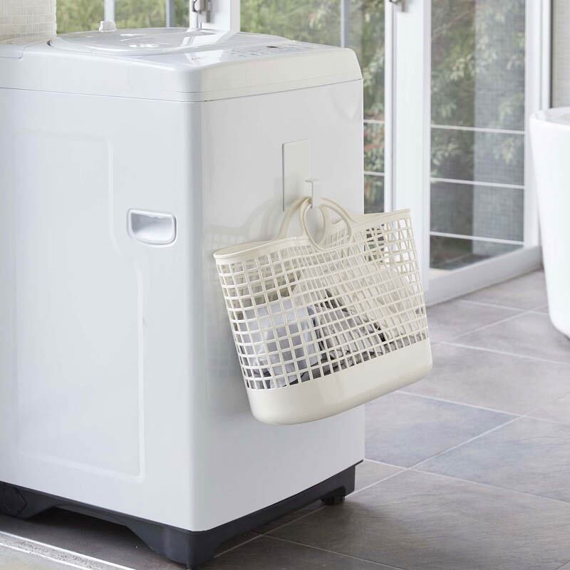 強力マグネットで洗濯機に取り付けるだけ、ランドリーバスケットを浮かせてスッキリ整頓します。収納するものに合わせて、縦向き・横向きどちらでも使えます。スプレーからハンガー・ピンチハンガーなど様々なものを収納できます。