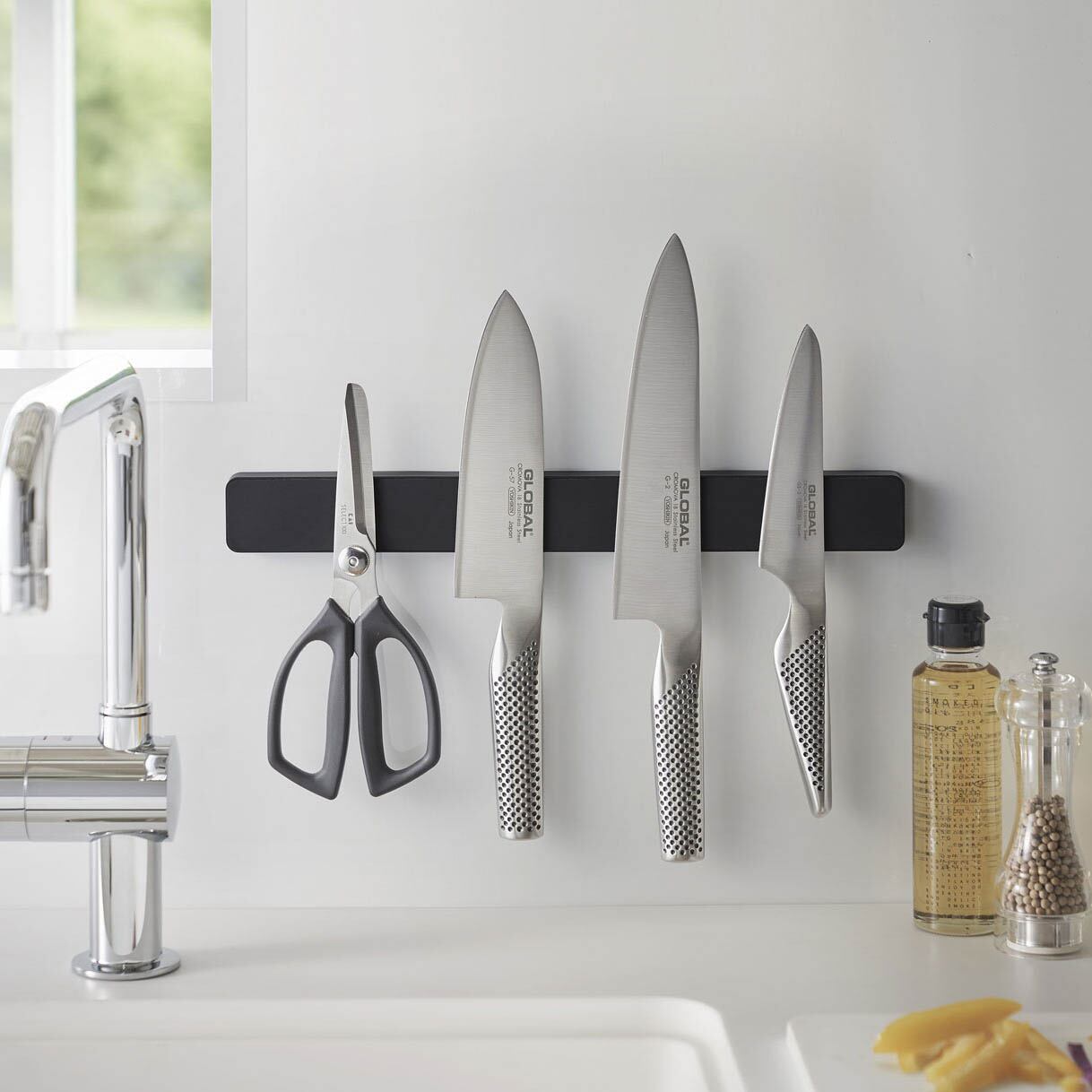 使いたい包丁がサッと手に取りやすく、収納できるマグネット式の包丁ホルダー。マグネットがつく壁面に簡単設置。表面はシリコーン製で、刃を傷つけずに包丁をしっかりキープします。