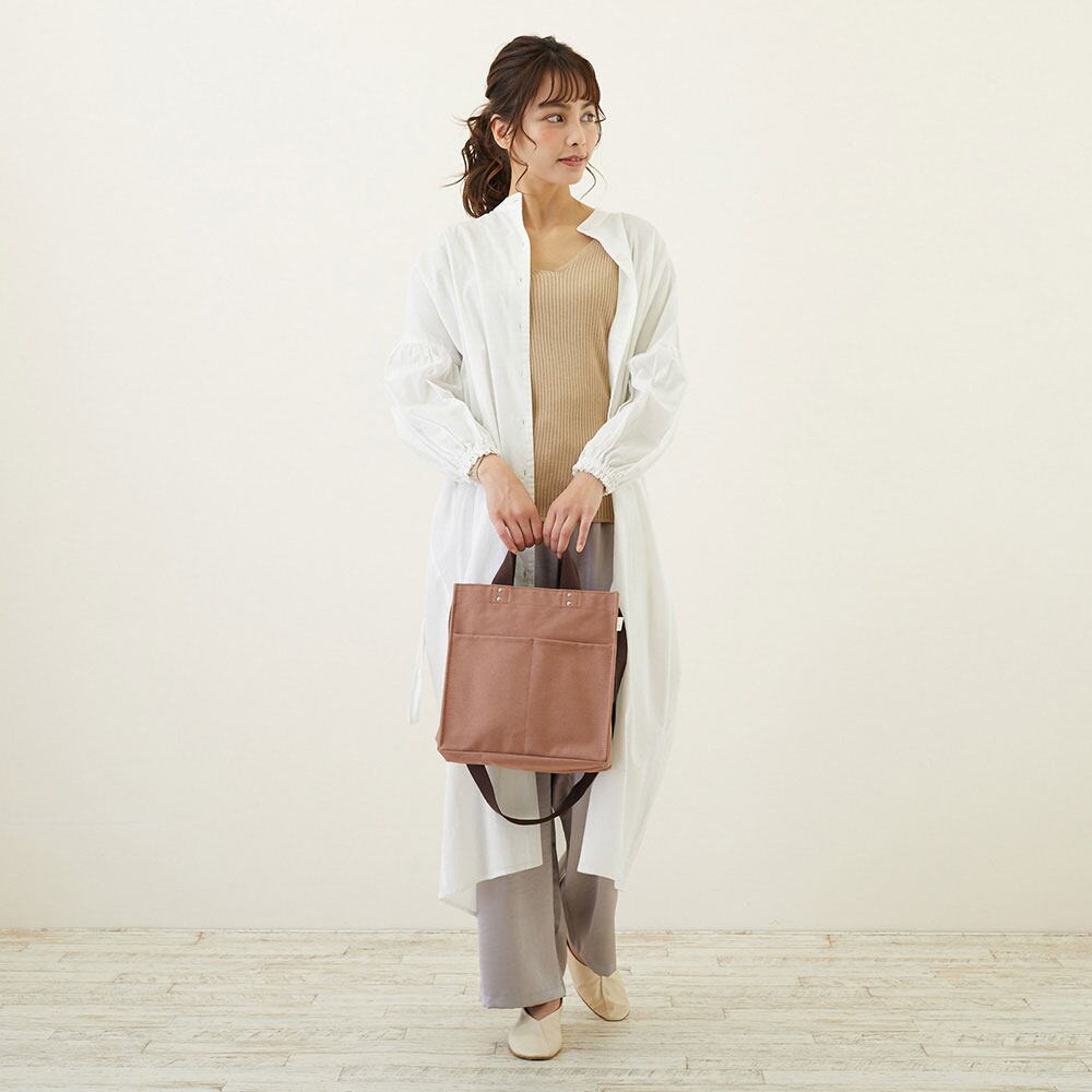 ・主な素材:綿 はっ水加工(表地)/綿 ノンフタル酸PVC加工(裏地)/ポリエステル、綿(持ち手、ショルダー)