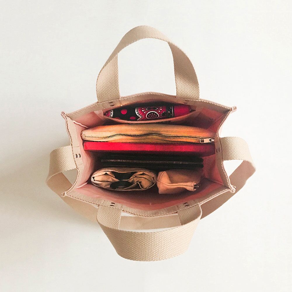・主な素材:綿 はっ水加工(表地)/綿 ノンフタル酸PVC加工(裏地)/ポリエステル、綿(持ち手、ショルダー)