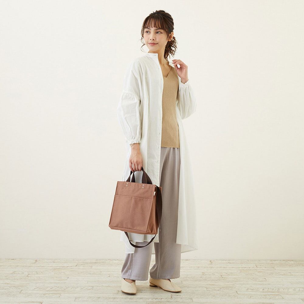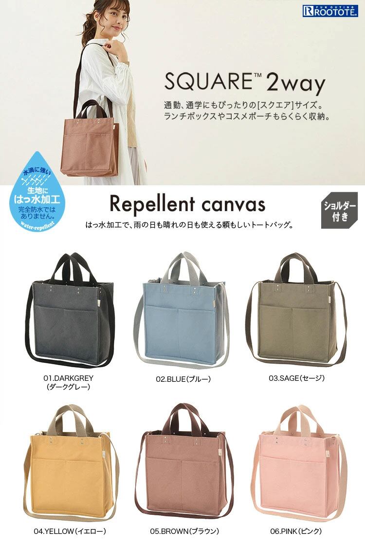 ショルダートートバッグ ROOTOTE ルートート スクエア2way.リペレントキャンバス 外ポケット付き ブラウン