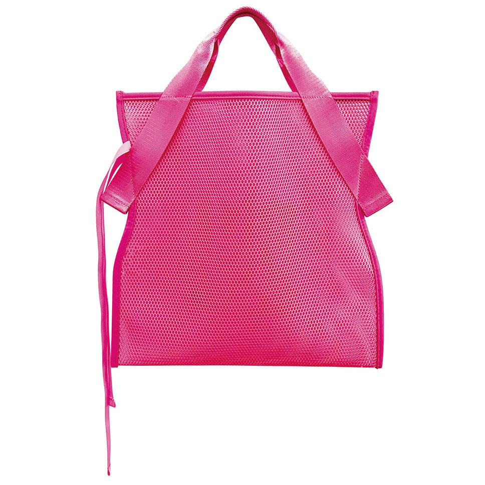 透けすぎないメッシュ素材のファッションエコトートバッグ。サブバッグとしてもエコバッグとしても使えます。かわいいカラーリングで、ファッションのアクセントに。