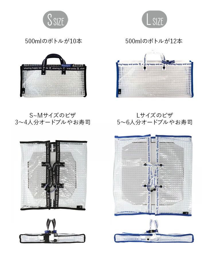 オードブルやお寿司・ピザなどをスマートに持ち運べます。S〜Mサイズのピザや3〜4人分のオードブルにぴったりサイズ。畳んだ状態では、500mlのボトルが10本入ります。