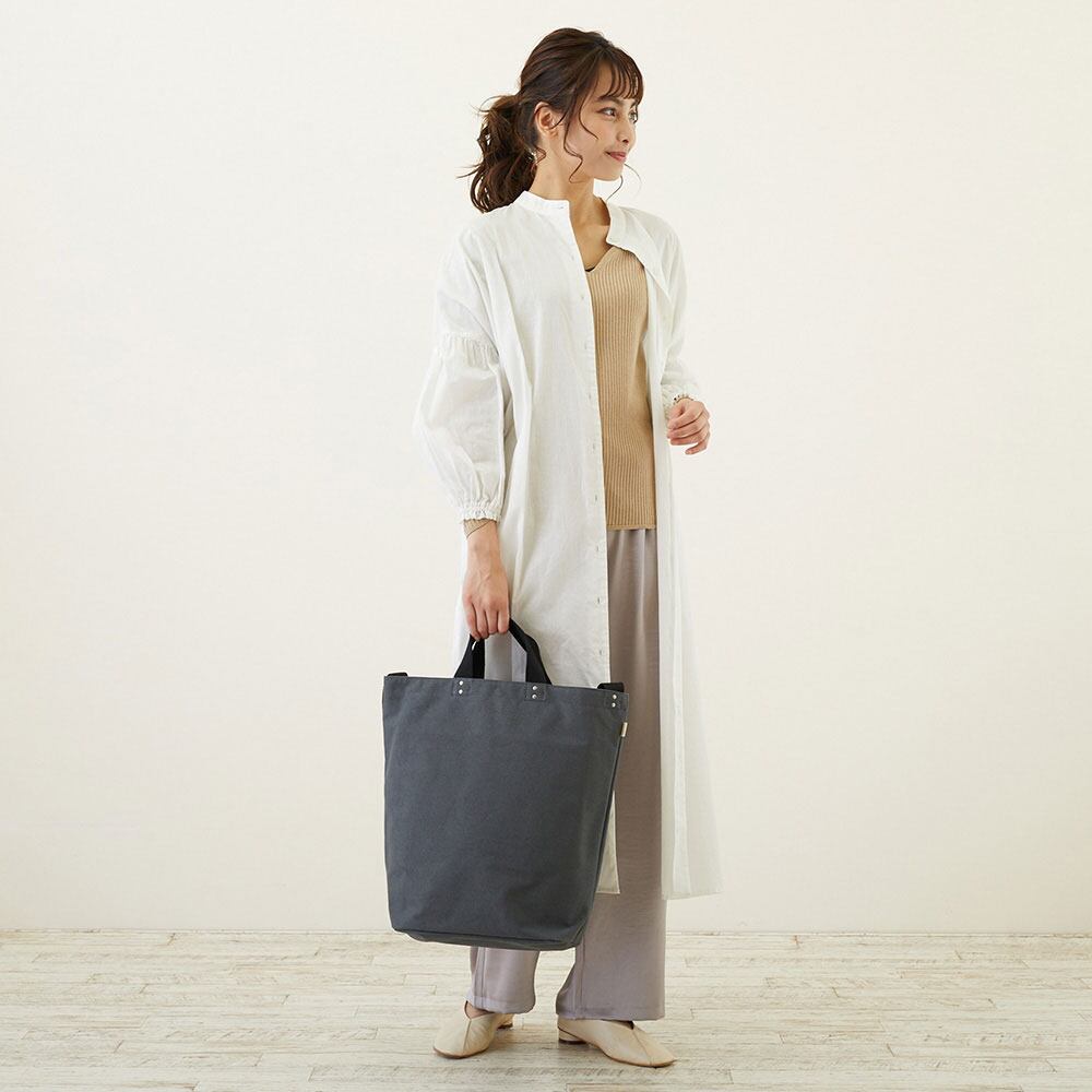 摩擦に強く丈夫なコットンキャンバスに、はっ水加工を施したタテ型トートバッグ。ショルダー付きで、トートバッグ・ショルダーバッグの2wayで使えます。