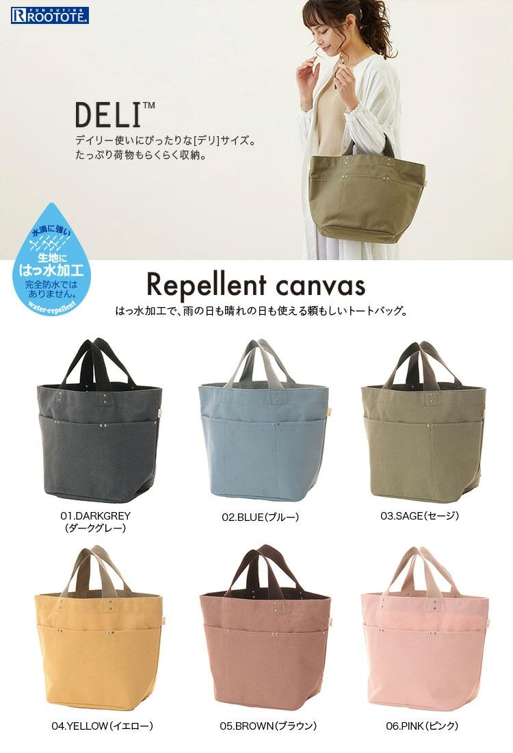 レディーストート ROOTOTE ルートート デリ.リペレントキャンバス 外ポケット付き ダークグレー