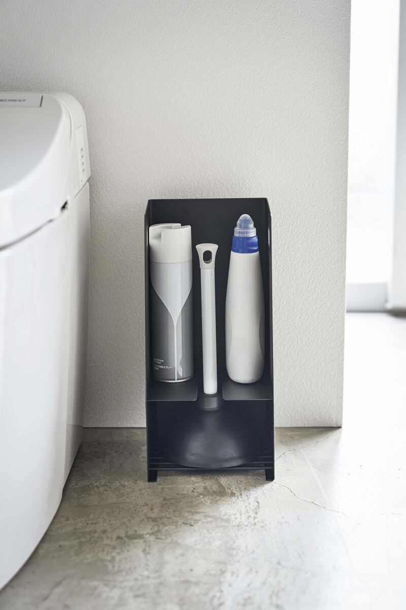 置き場所に困るラバーカップと消臭スプレー、掃除用洗剤などを一括収納します。ラバーカップをサッと入れるだけの簡単収納。シンプルなデザインだから美しく収納できます。