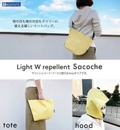 サコッシュ、トート、そしてフードとして使える3WAYタイプ。超軽量撥水素材で、雨の日も晴れの日もデイリーに使える、頼もしいトートバッグです。長さ調整が可能なショルダー付きで、肩掛け、斜め掛けに対応します。サイドのファスナーを広げればフードに変身、突然の雨や風から頭をガードします。