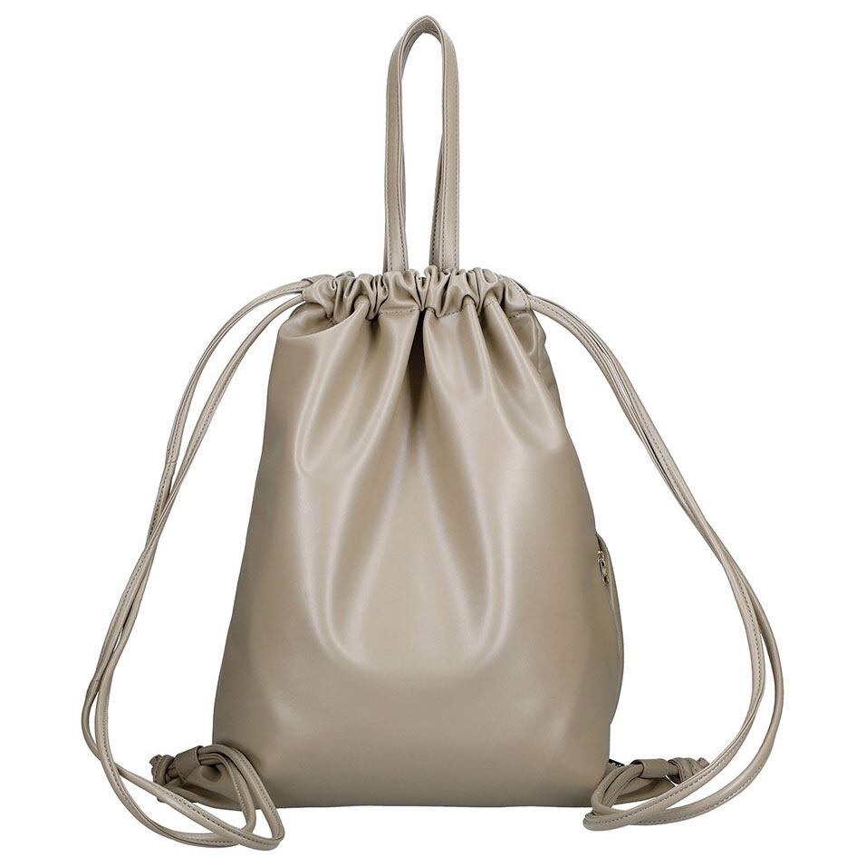 柔らかいフェイクレザーの生地感が魅力、トートにもリュックサックにもなる2wayトートバッグ。口元を縛らずフラットなトートバッグとしても使用できます。本革のような質感で、上品でしっかりした雰囲気に。汚れや水滴なども拭き取りやすく機能的です。