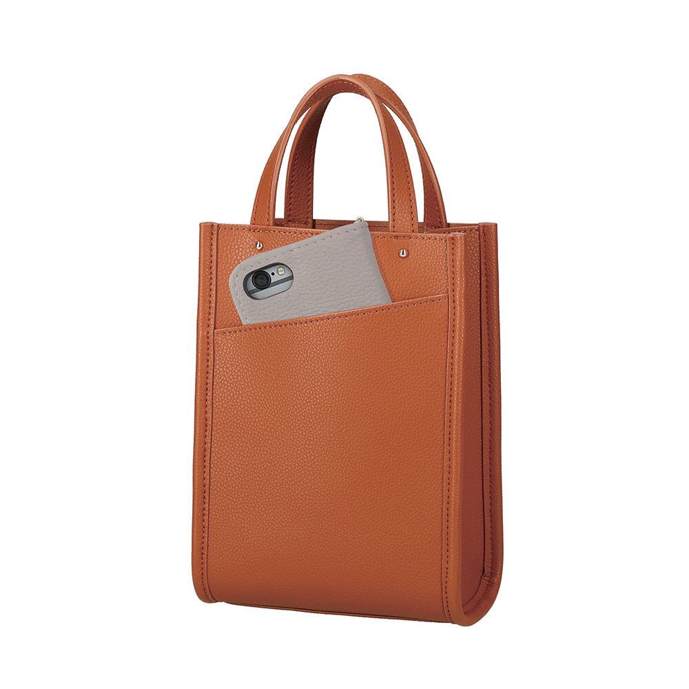 取り外し可能なショルダー付きで、トートバッグ・ショルダーバッグの2wayで使えます。ショルダーは長さ調整ができるので、斜め掛けも可能です。本革のような上質な質感、上品なフォルムを存分に生かしたミニマルなデザイン。