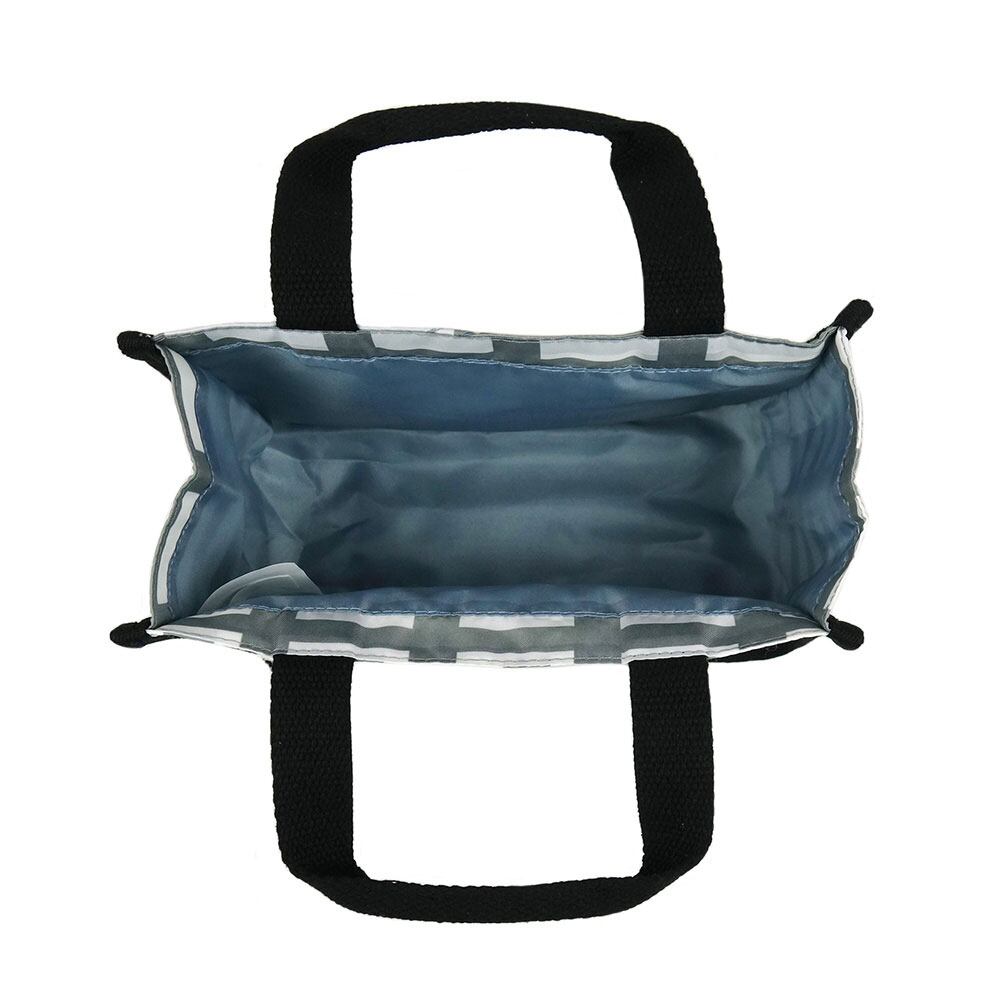 毎日のお弁当入れに便利なサイズ。幅20cm程度のメンズスリムランチBOXも入ります。巾着裏地はアルミボンディングを採用し、メッシュポケットには保冷剤を入れてご利用いただけます。出し入れ簡単な口元巾着タイプで、バッグより多少の高さがあるものも入ります。保冷が不要な時は、ポーチを取はずして普通のランチバッグとしても使用できます。