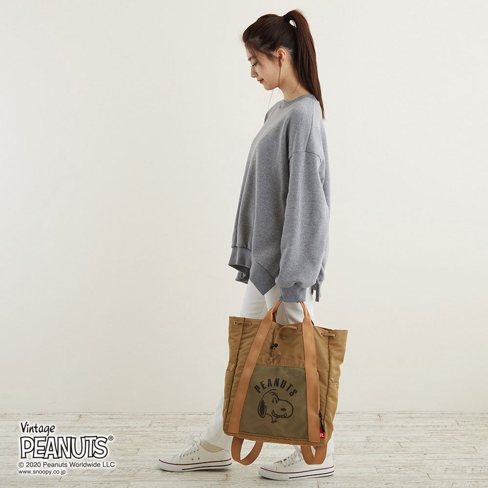 スヌーピーバッグ ROOTOTE ルートート セオルー.ピーナッツ 外ポケット付き リュックサック カーキ