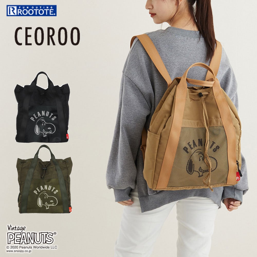 スヌーピーバッグ ROOTOTE ルートート セオルー.ピーナッツ 外ポケット付き リュックサック ベージュ