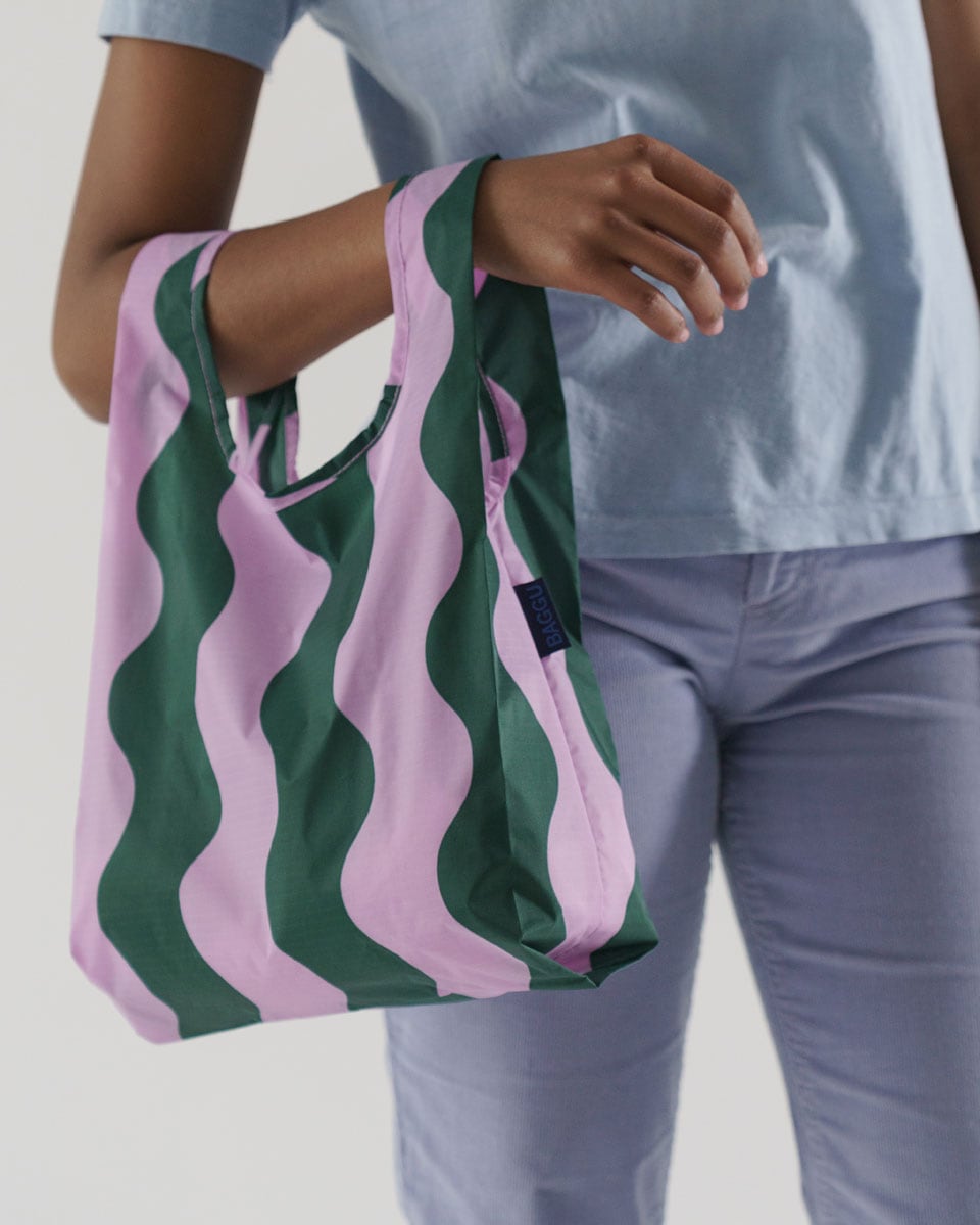 エコバッグ BAGGU BABY ベビーバグゥ バグー ウェーブストライプ ピンクxグリーン