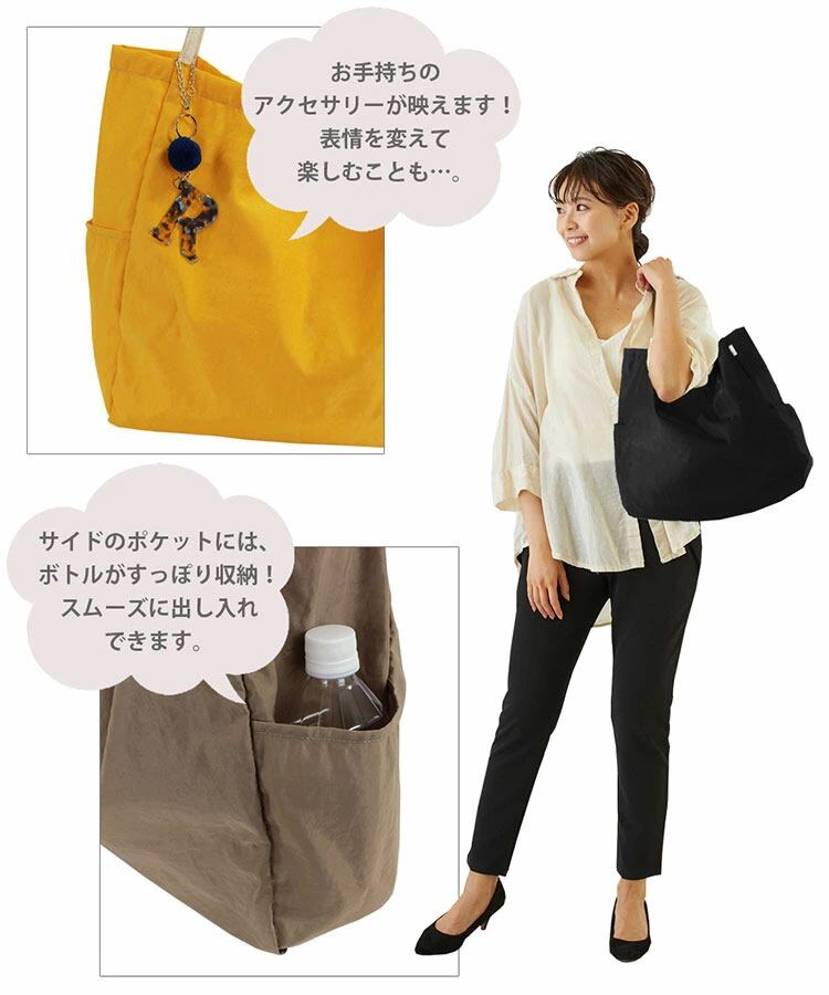 なめらかな手触りが心地よいナイロン素材のトートバッグ。適度なハリ感と程よいシワ感。手にした時からしっくりと馴染む仕上がりが魅力。繰り返しの使用は、より生地を柔らかに育てます。使い続ける楽しさをあじわえるトート。折りたたんで、内側のポケットにコンパクトに収めることもできます。