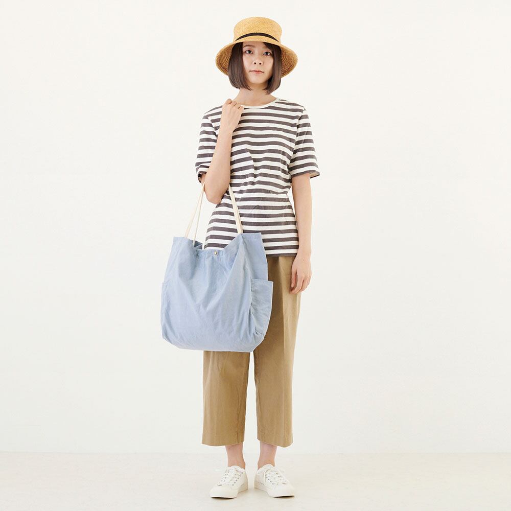 なめらかな手触りが心地よいナイロン素材のトートバッグ。適度なハリ感と程よいシワ感。手にした時からしっくりと馴染む仕上がりが魅力。繰り返しの使用は、より生地を柔らかに育てます。使い続ける楽しさをあじわえるトート。折りたたんで、内側のポケットにコンパクトに収めることもできます。