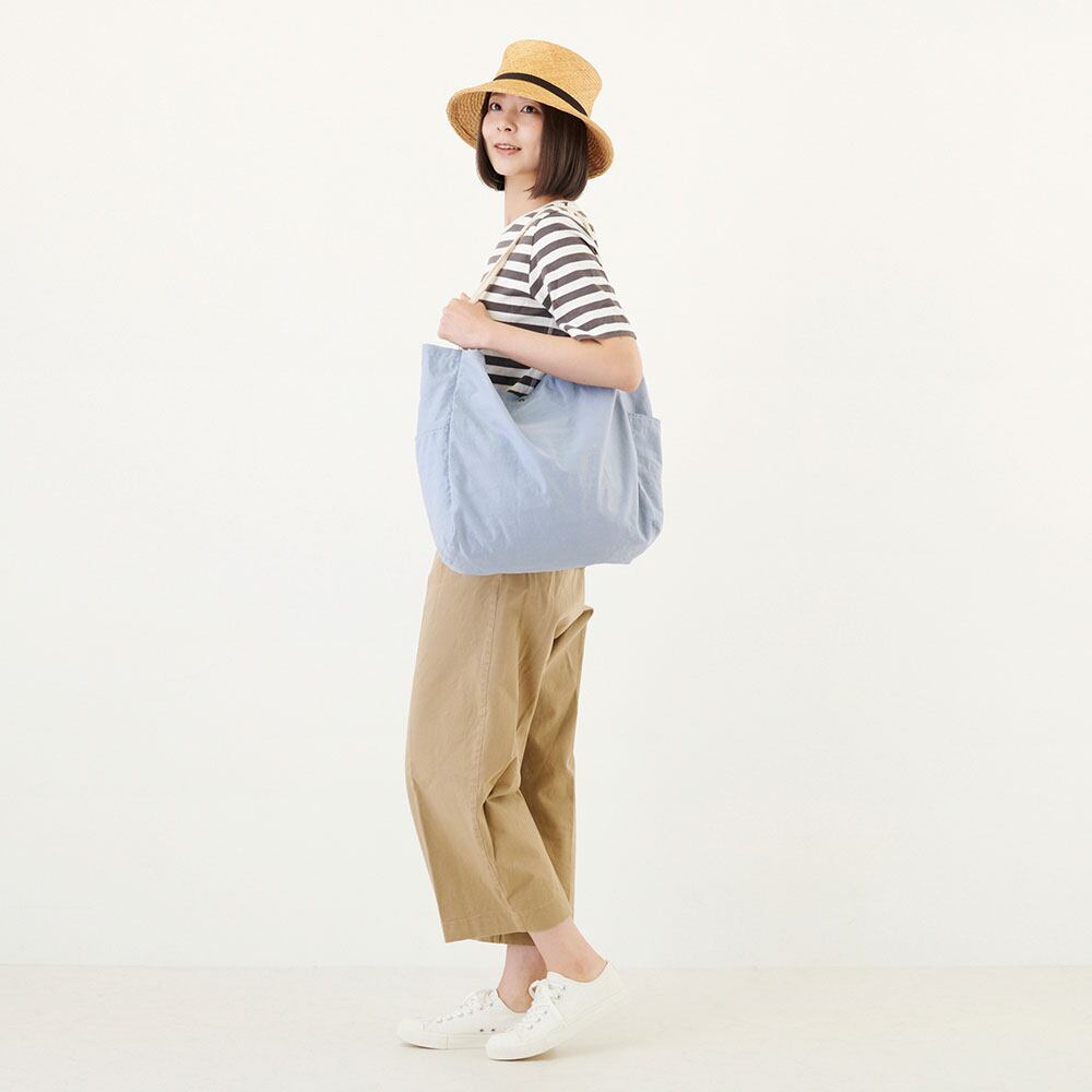 なめらかな手触りが心地よいナイロン素材のトートバッグ。適度なハリ感と程よいシワ感。手にした時からしっくりと馴染む仕上がりが魅力。繰り返しの使用は、より生地を柔らかに育てます。使い続ける楽しさをあじわえるトート。折りたたんで、内側のポケットにコンパクトに収めることもできます。