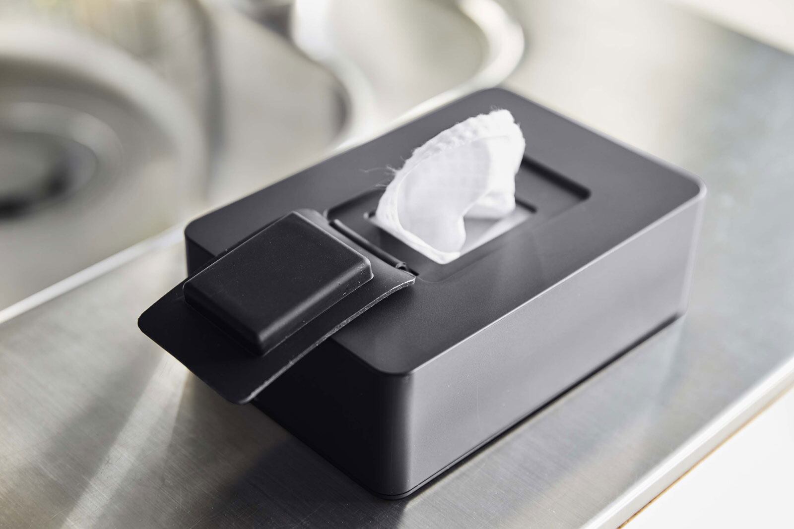 シリコーン製の蓋が便利なウェットシートケースで、ウェットシートをスタイリッシュに収納します。シリコーン製の蓋なので、中のシートが乾きにくくなっています。