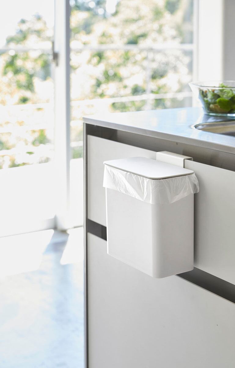 マグネット脱着式で、シンク扉や冷蔵庫横などに簡単取り付けできる蓋付き小型ゴミ箱。直接シンクの上に置いても使えます。パッキン付きで嫌な臭いをガードします。ゴミ箱用途ほか、食洗機用粉末洗剤入れとしてや冷蔵庫横などでだしパックやふりかけ等のストック容器としても使えます。
