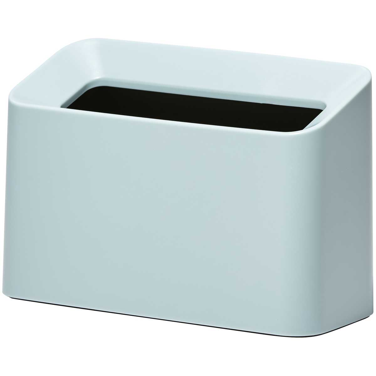 洗面スペースが広くスッキリ使えるようになる卓上ゴミ箱。洗面の収納棚に収まる奥行き9.5センチのスリム設計。ゴミ捨て開口部はコットンなど洗面に出るような小さなゴミを捨てやすいように、傾倒させて大きく拡げています。