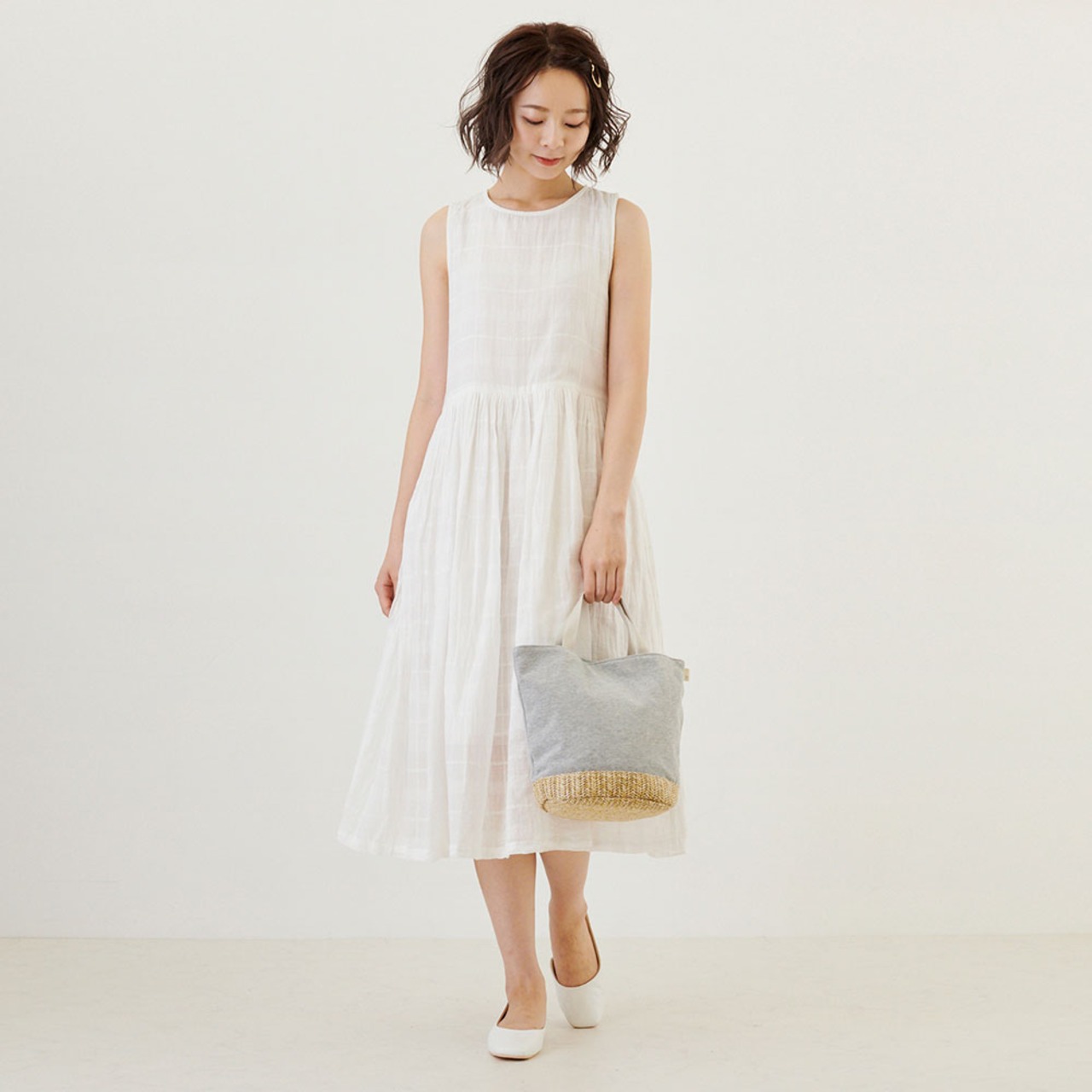 優しい風合いのメランジ調コットンテンジクを使用した、ナチュラルでリラックス感のあるトートバッグ。底面はカゴをイメージした夏らしいデザイン。マチもたっぷり、たくさん荷物が入って収納力抜群。ランチボックス、ボトル、大き目ポーチなどらくらく入ります。どんなファッションにも合わせやすく、季節を問わず大活躍です。