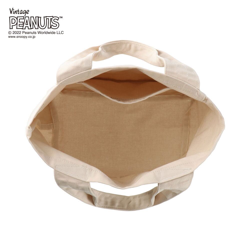 機能とシンプルさを追求した形状のスヌーピーバッグ。小物の収納に便利な外ポケットや、裏地が無いのに縫い目が表に響かない内ポケットなど、細部にまでこだわったつくり。くたっと馴染みの良いコットン素材で、幅広い年代のカジュアルスタイルにマッチします。
