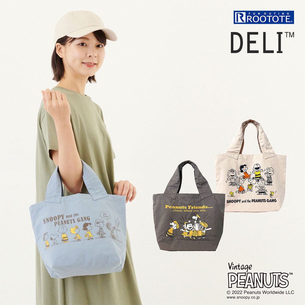 2022新作 スヌーピーバッグ ROOTOTE ルートート デリ.ツイル.ピーナッツ 外ポケット付き グレー