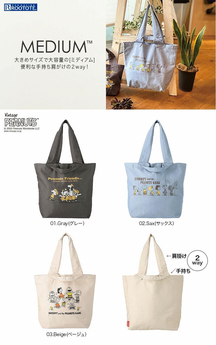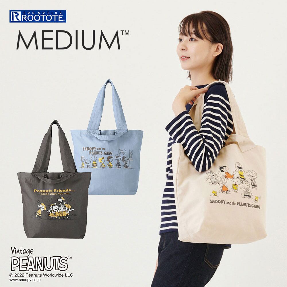2022新作 スヌーピーバッグ ROOTOTE ルートート ミディアム.ツイル.ピーナッツ 2wayトートバッグ ベージュ
