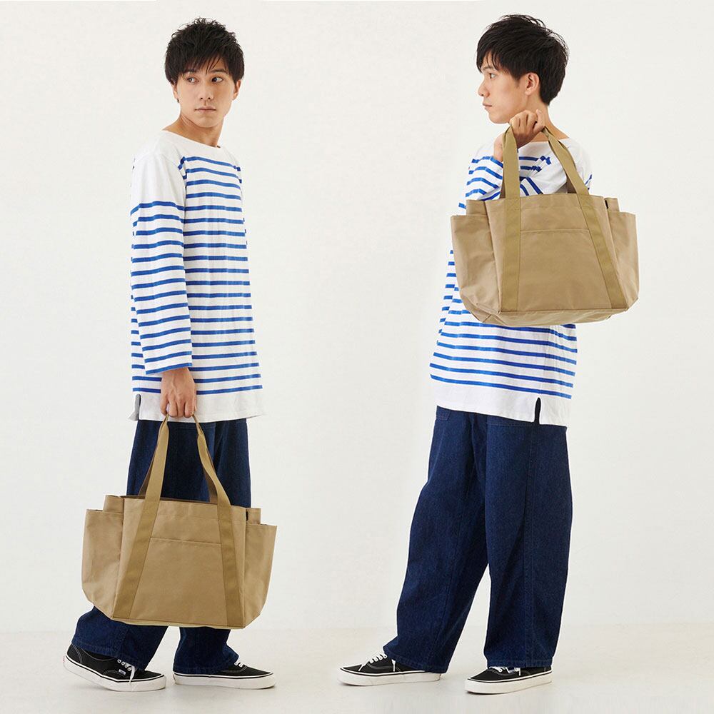 A4サイズの書類はもちろん、ランチボックス、ボトル、折りたたみ傘、コスメポーチなどもらくらく収納。13インチのパソコンも入るので、お仕事用バッグとしても使えます。