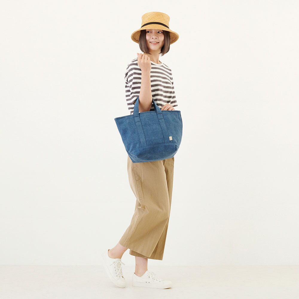 洗いをかけたデニムをさらに使い込むことで手肌に馴染み、味わいが増していく「育てる」トート。自然染料を使用し、洗いの工程においても環境に配慮した、環境に優しいトートバッグです。内側生地を重ねることで、カジュアルになりすぎない、しっかりとした仕上がりになっています。