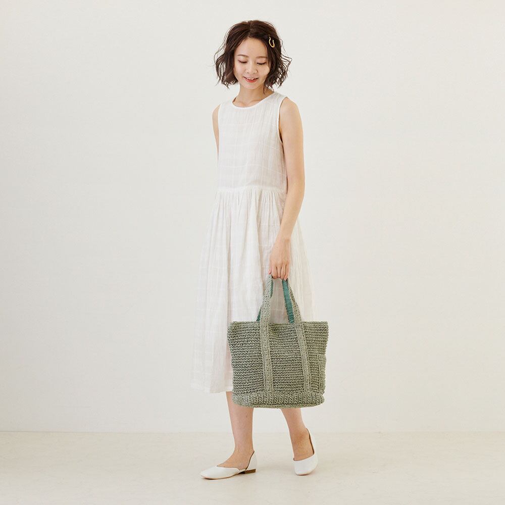 淡いパステルカラーで、合わせやすく、カジュアルにも、フェミニンにも持っていただけます。手編みのふんわりした雰囲気でも、底板付きで、重い荷物もしっかり収納してくれます。インナーポケットも小物入れとして、とっても便利。ポイントになるサイドの外ポケットには、サッと取り出したい、鍵やスマホ、マスクなどを入れておけます。