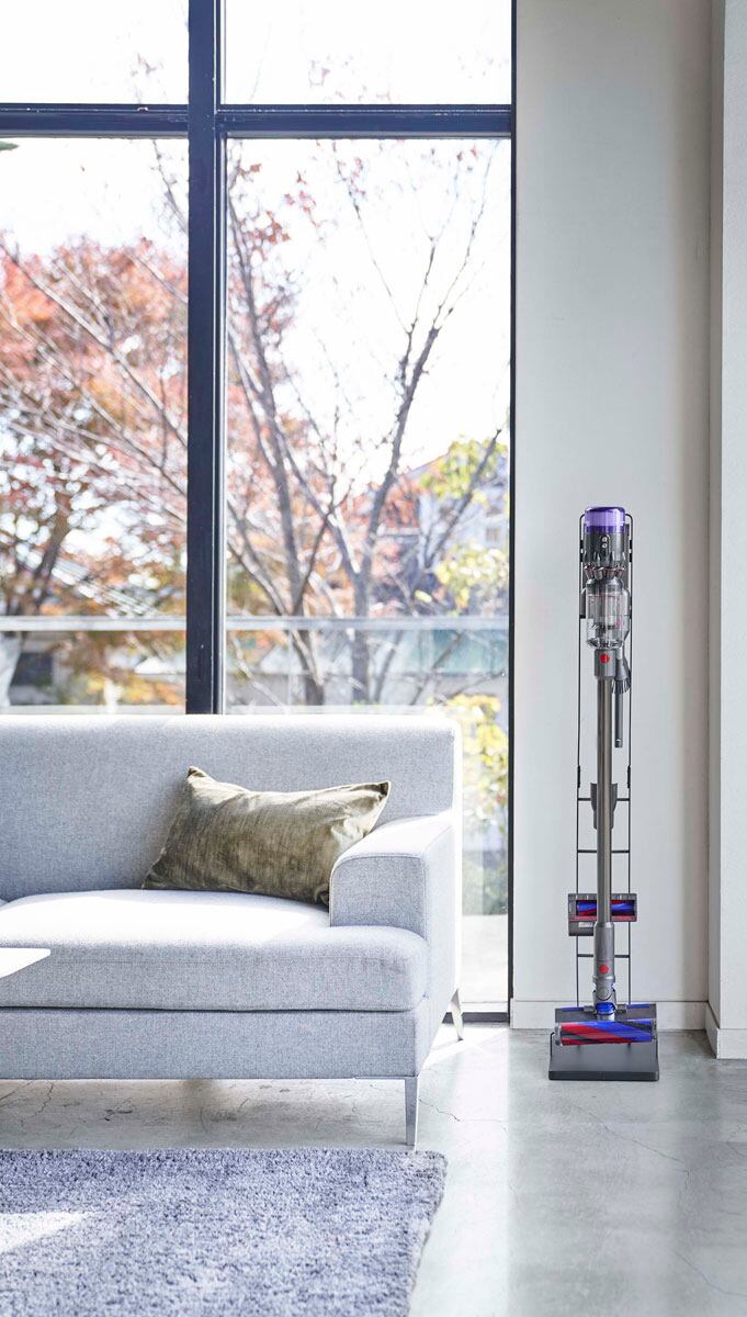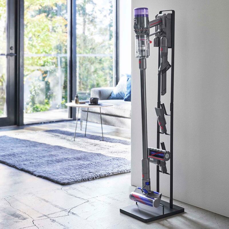 ダイソンマイクロ1.5kgとダイソンデジタルスリム用の掃除機スタンド。壁に穴を開けずにダイソンコードレスクリーナーをスリムに収納します。対応コードレスクリーナーを収納したまま充電が可能。クリーナーツール類も一括収納できます。