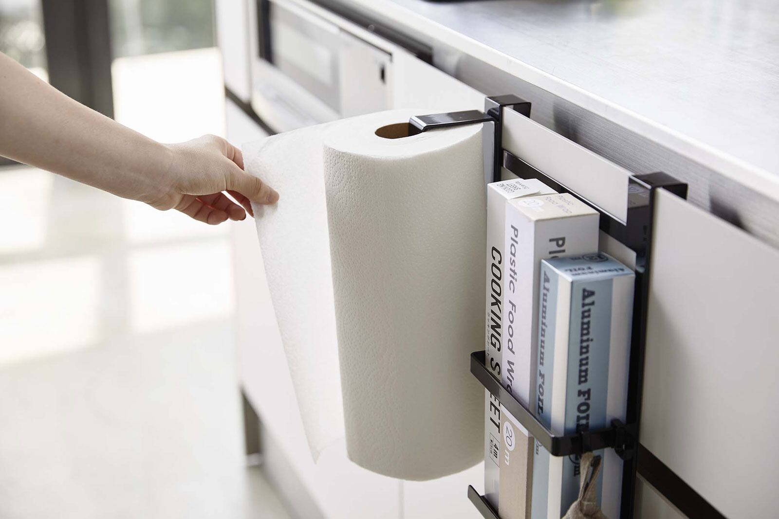 キッチン便利グッズ 山崎実業 tower タワー シンク扉キッチンペーパー&ラップホルダー ブラック