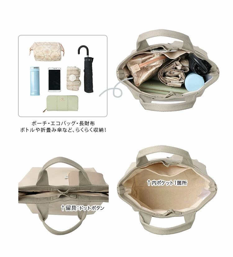 ・主な素材:合成皮革(表地)/綿(裏地)/ポリエステル(持ち手)/ドットボタン