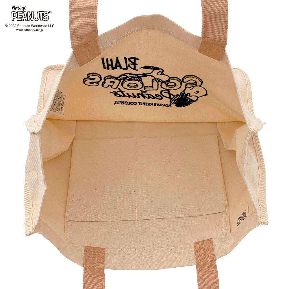 しっかりしたコットンキャンバス生地に、愛らしいスヌーピーの刺繍がされた大容量トートバッグ。軽くてたっぷり荷物が入るので、荷物が多くなりがちなシーンにも大活躍します。