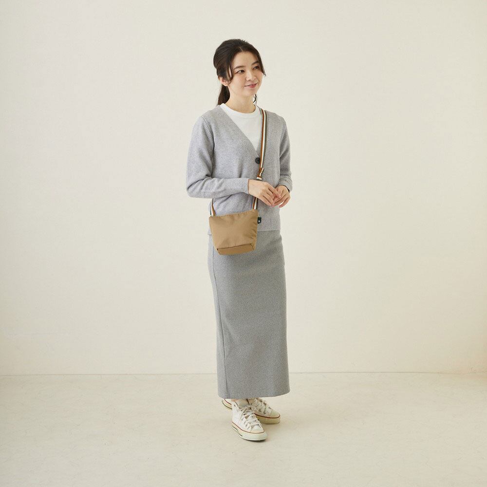 体に寄り添うやわらかさがありながら、型崩れしにくくなっています。ちょっとした用事など身軽にお出かけできる便利サイズ。アクセントになる印象的なデザインの持ち手とショルダーベルト付きで、トートバッグ、ショルダーバッグとして使えます。ショルダーは、長さ調整ができるので、斜め掛けも可能です。