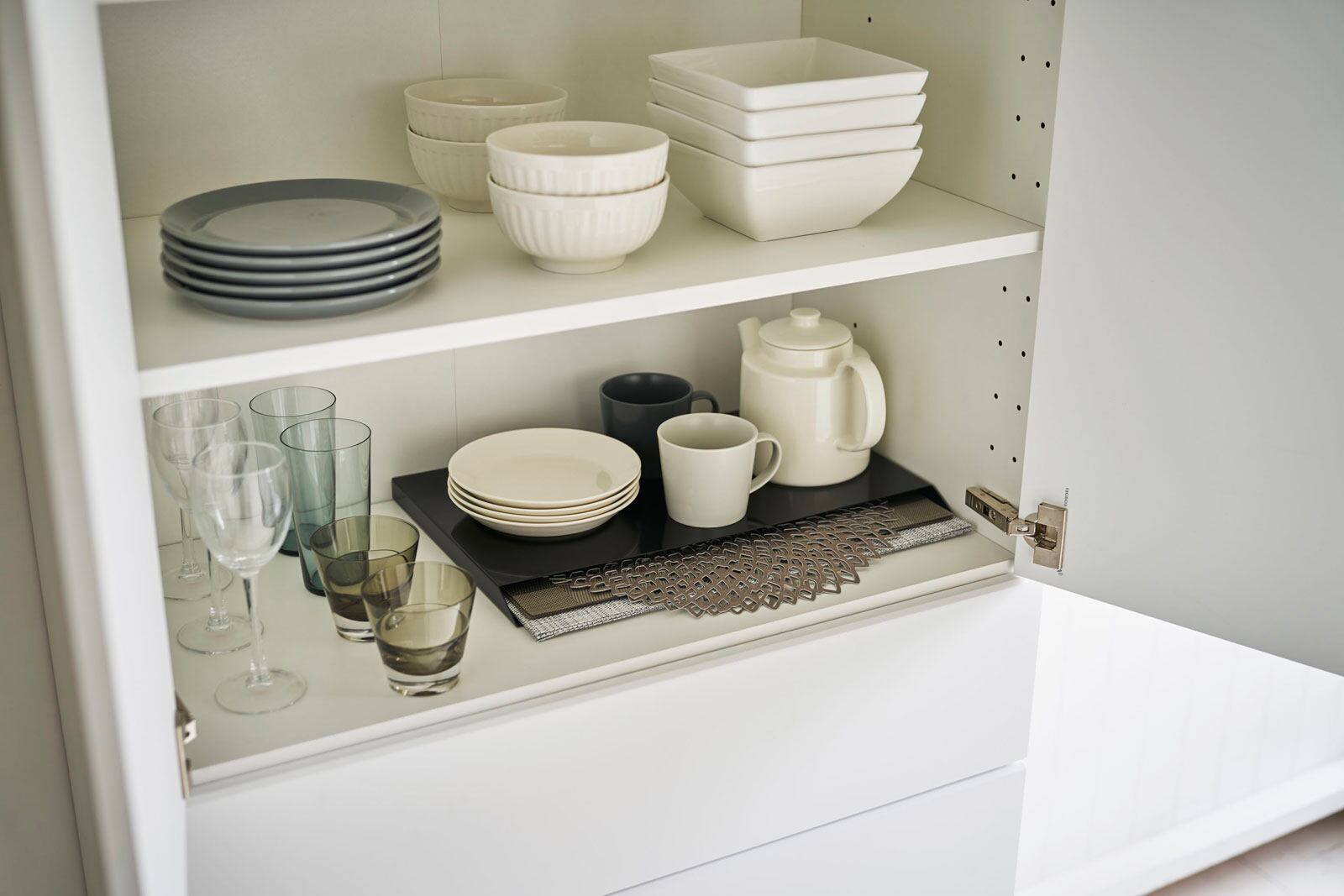収納場所に困るランチョンマットを、狭い隙間を利用してスマートに収納。マグネット、置く、立てるなど、キッチンの隙間に様々なシーンに合わせて、ランチョンマットを収納できます。底面にスリットがあるので、円形のランチョンマットも型崩れしにくく、収納できます。