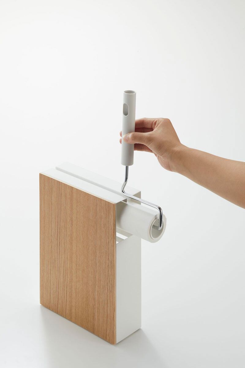 隠してスタイリッシュに収納できるカーペットクリーナースタンド。横からスライドして入れるだけの簡単収納。左右どちらの方向からでも収納できます。下段にはスペアテープが3本入ります。