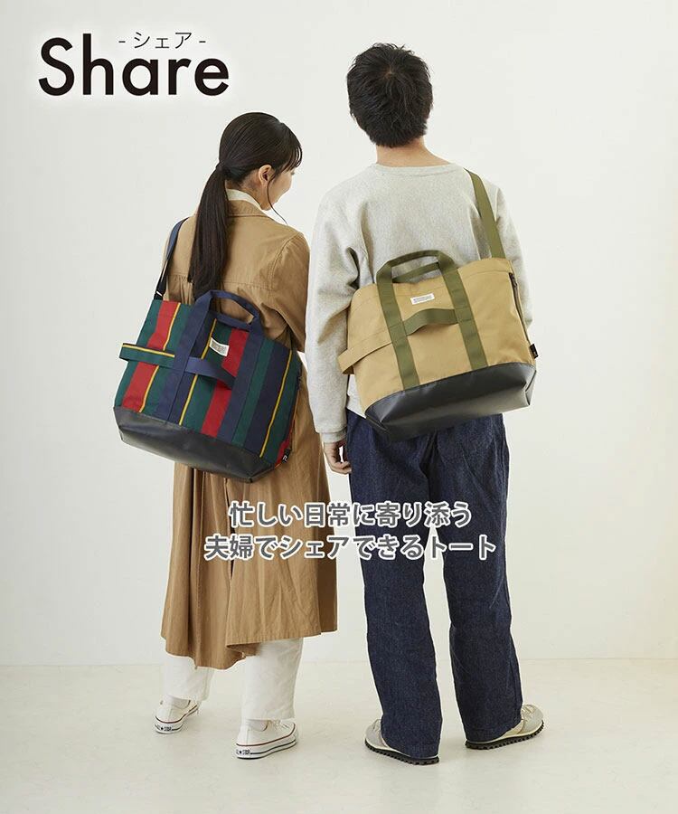 ショルダーにもトートにもなる2Way仕様。表地には撥水加工が施され、雨の日も晴れの日もデイリーに使えるトートバッグです。しなやかさと強さを両立しているので、荷物を入れても型崩れがなく綺麗なシルエットが保たれ、しっかり自立もします。身長に合わせて長さ調節ができるロングショルダー付きで、手持ち、肩掛け、斜め掛けと使うシーンにあわせて選べます。