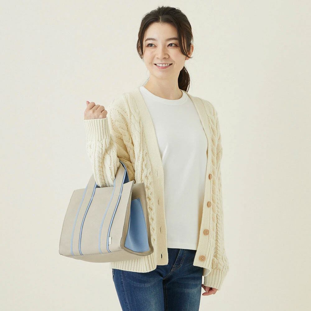 やわらかくて、あたたかみのあるマイクロスエード素材。居心地の良い、リラックスした、あたたかみのある、小さめワンマイルトート。ちょっとそこまでのかわいいサイズ。A5ノート、ポーチ、エコバッグ、長財布などをラクラク収納。必要なものだけをシンプルに持ち運べます。