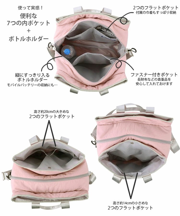 ・サイズ:約W365xD140xH340mm/約L550mm(持ち手全長)/最長約L1400mm(ショルダー最長)/約W320xH430mm(巾着)