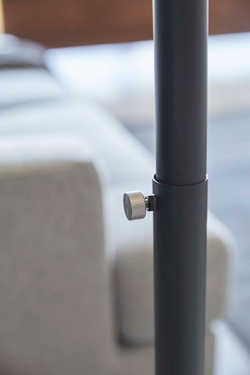 フック付きで、ポータブルスピーカーを吊り下げたり、余ったケーブルの収納にも便利です。高さは約77〜120cmの間で、無段階で調節が可能です。