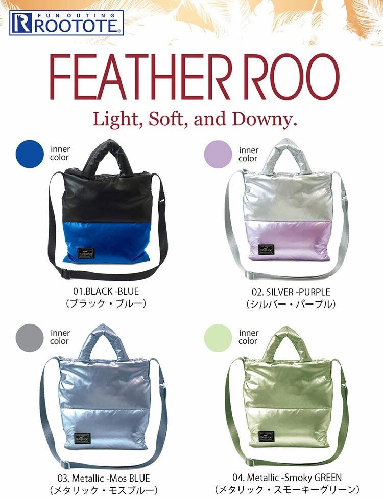 2022新作 中綿トートバッグ ROOTOTE FEATHER ROO ルートート LT.サコッシュ.フェザー.カラー-B カーキ