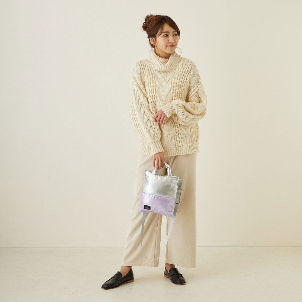 ・主な素材:ポリエステル(表地、裏地、持ち手、ショルダー)/フェザー、ダウン(中綿)