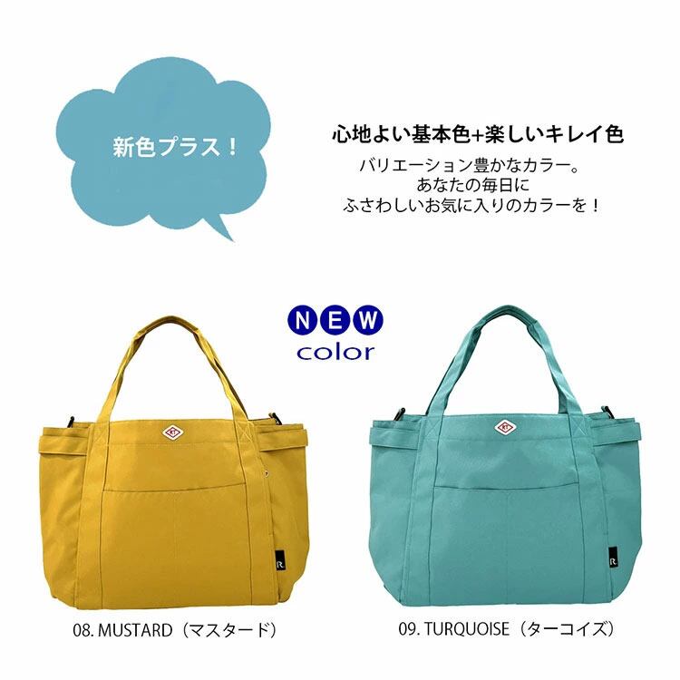 雨の日だって、へっちゃら。晴れの日も、雨の日も、気にせずに使えるはっ水加工が施されています。両端のDカンに別売りのストラップをつければ、ショルダーバッグとしてもお使いいただけます。手前のポケットには、スマホなど。ルーポケットには、ICカードなどを。口元にはドットボタンが付いており、安心です。