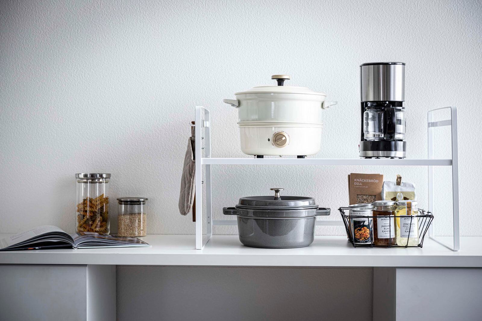トースターや調理家電、鍋などの収納に便利なキッチンラックです。おしゃれなトースターラックはもちろん、コーヒーメーカーや調理家電、よく使う鍋やキッチンストックの収納にも便利です。