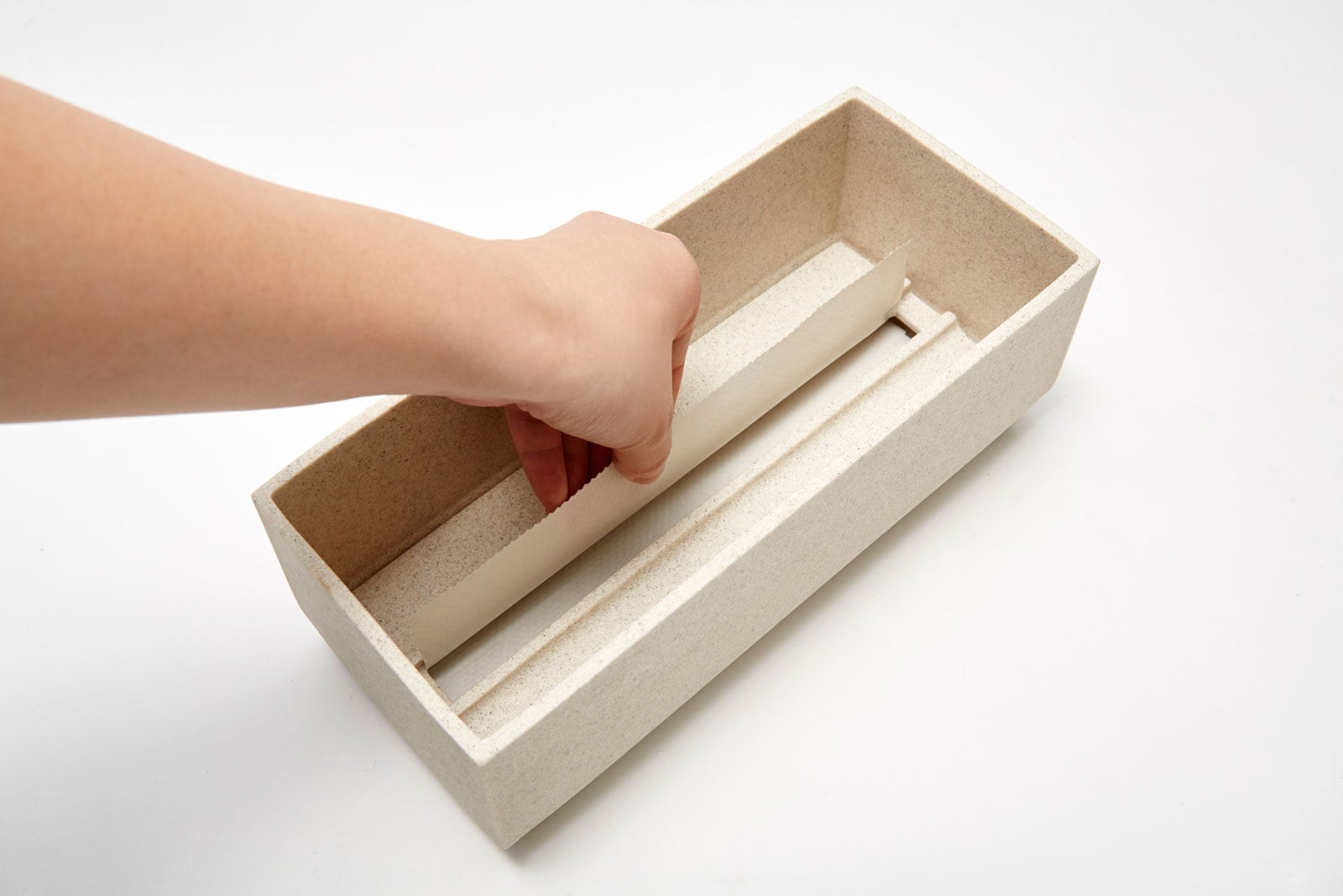 落としぶたのような仕組みで、最後の一枚までスムーズに取り出せます。フタには適度な重みがあり、ケースを押さえなくても片手でペーパータオルをとることができます。ペーパータオルほか、キッチンタオルにもお使い頂けます。