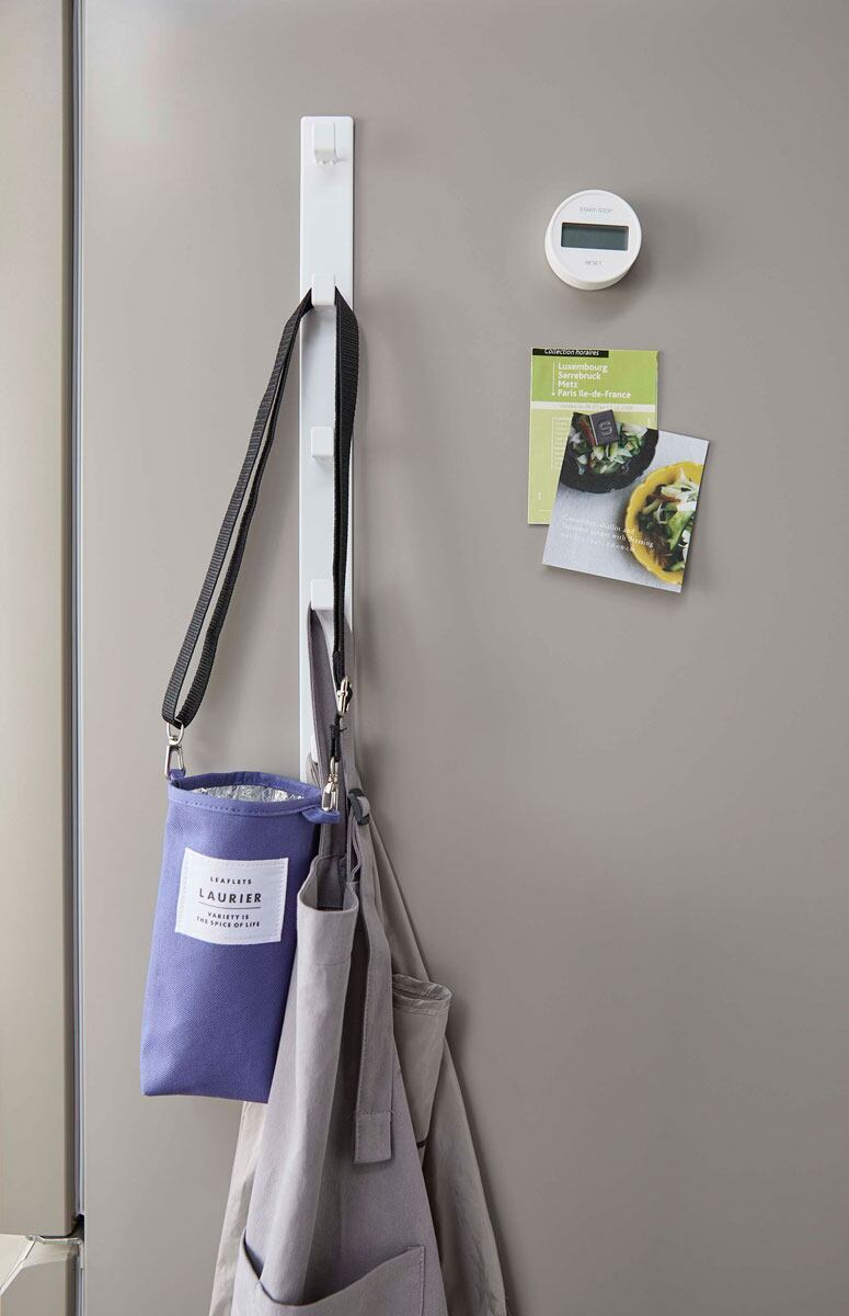 マグボトルを洗う時などに困るカバーを一時掛けしたり、毎日使うエコバッグ、エプロンなどを掛けておくのに便利です。縦型タイプで、省スペースに収納いただけます。
