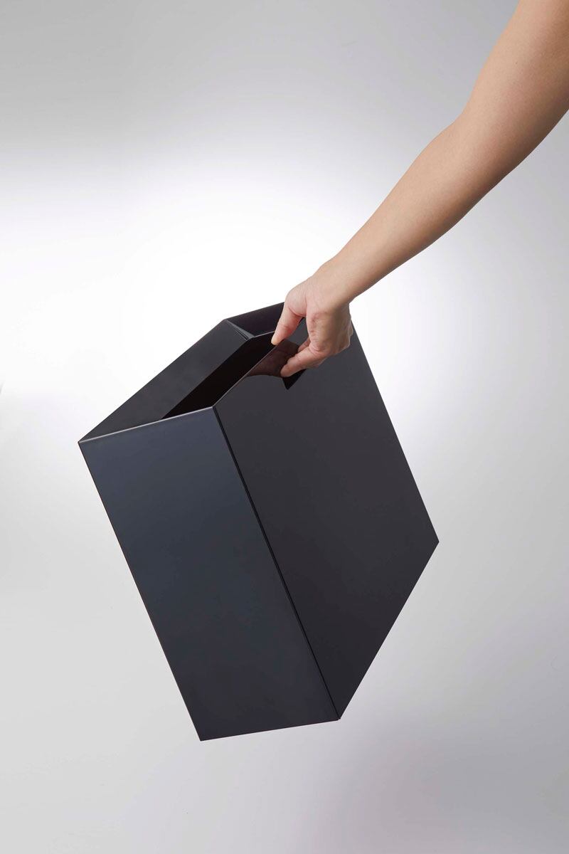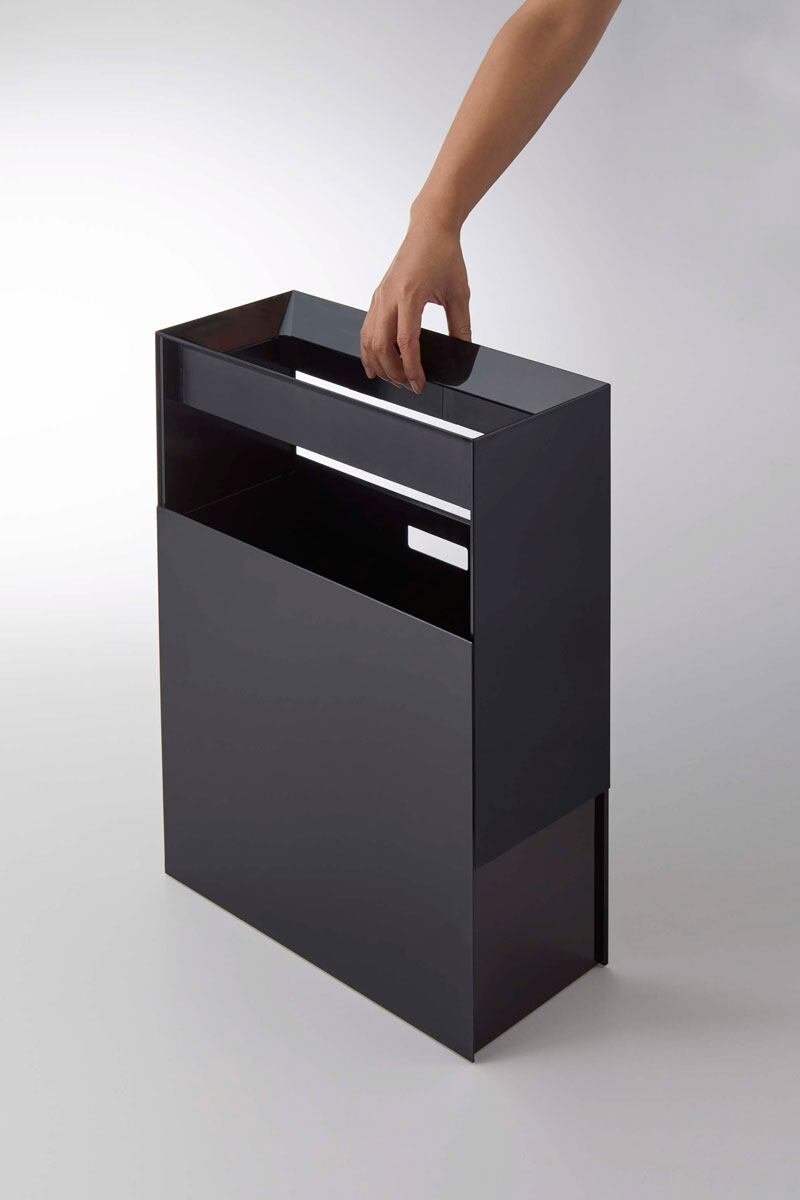 袋を引っ掛けても外から見えない、見た目スッキリなゴミ箱です。取っ手があるので移動もスムーズ。幅約30cmのワイドな開口部はお弁当のゴミや雑誌がそのまま入ります。